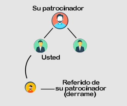 Usted puede referir a tantas personas como usted desee. Entre más personas refiera mayor será la cantidad de pagos que usted recibirá por concepto de incorporaciones al programa. Bien, solo que aquí hay un detalle importante, el Plan de Compensaciones sólo permite que usted tenga 4 personas ubicadas en el primer nivel de su matriz de invitados, por lo que el resto de sus referidos serán ubicados automáticamente por el sistema en los huecos existentes niveles abajo. A este efecto se le denomina "derrame de referidos".